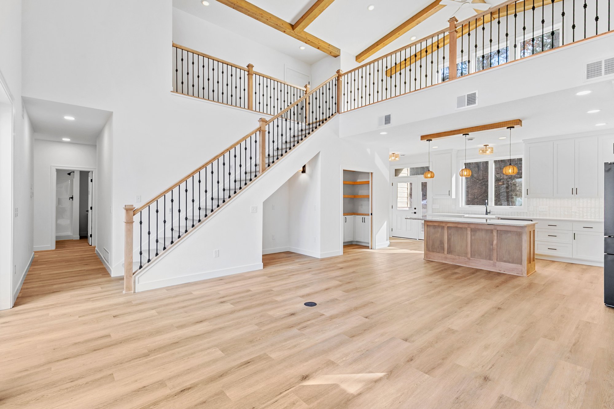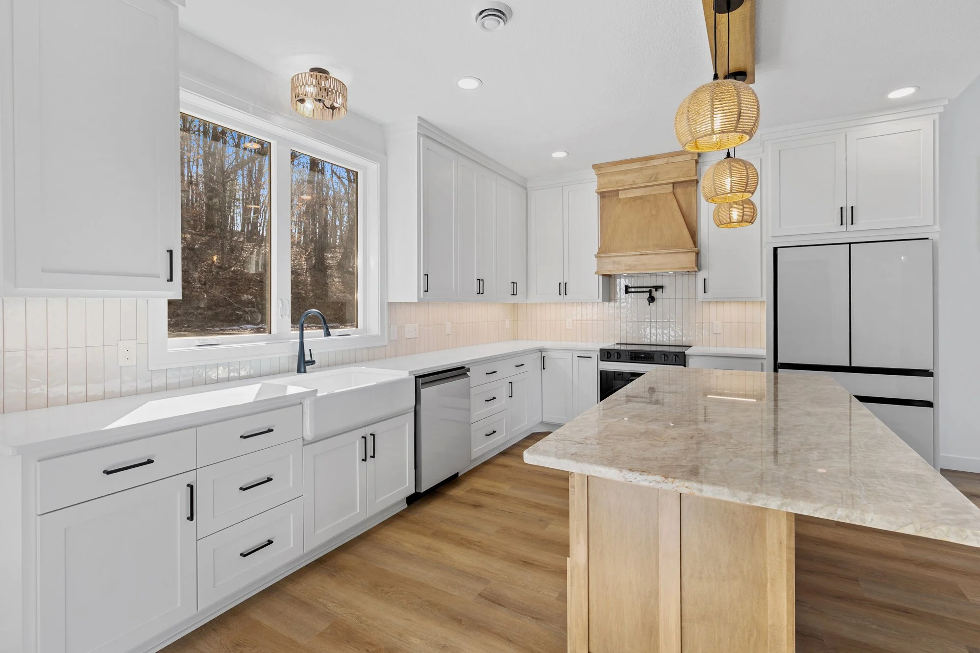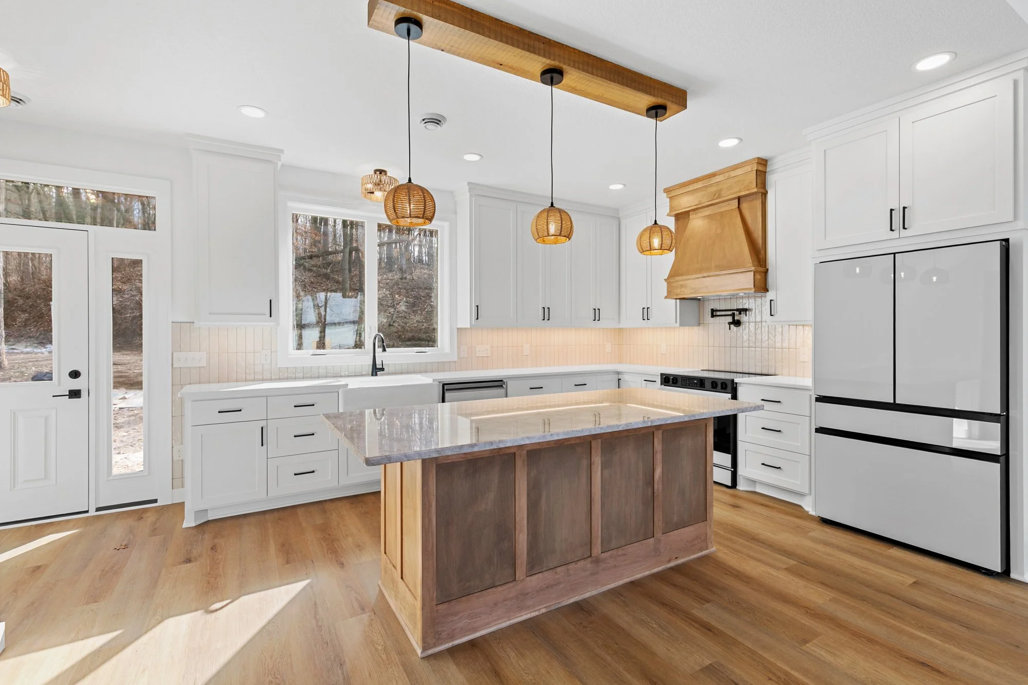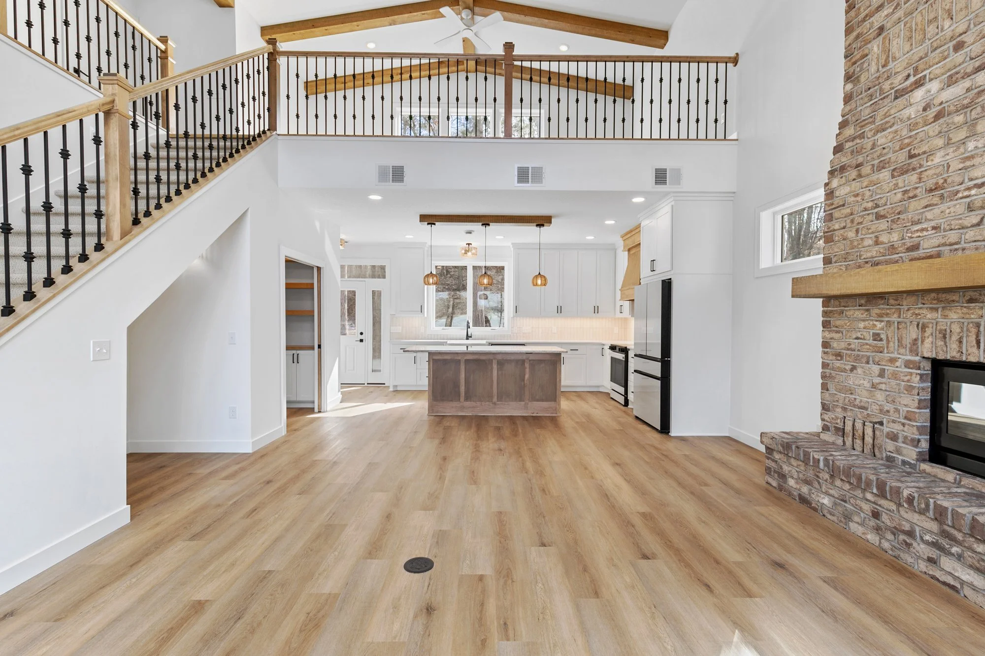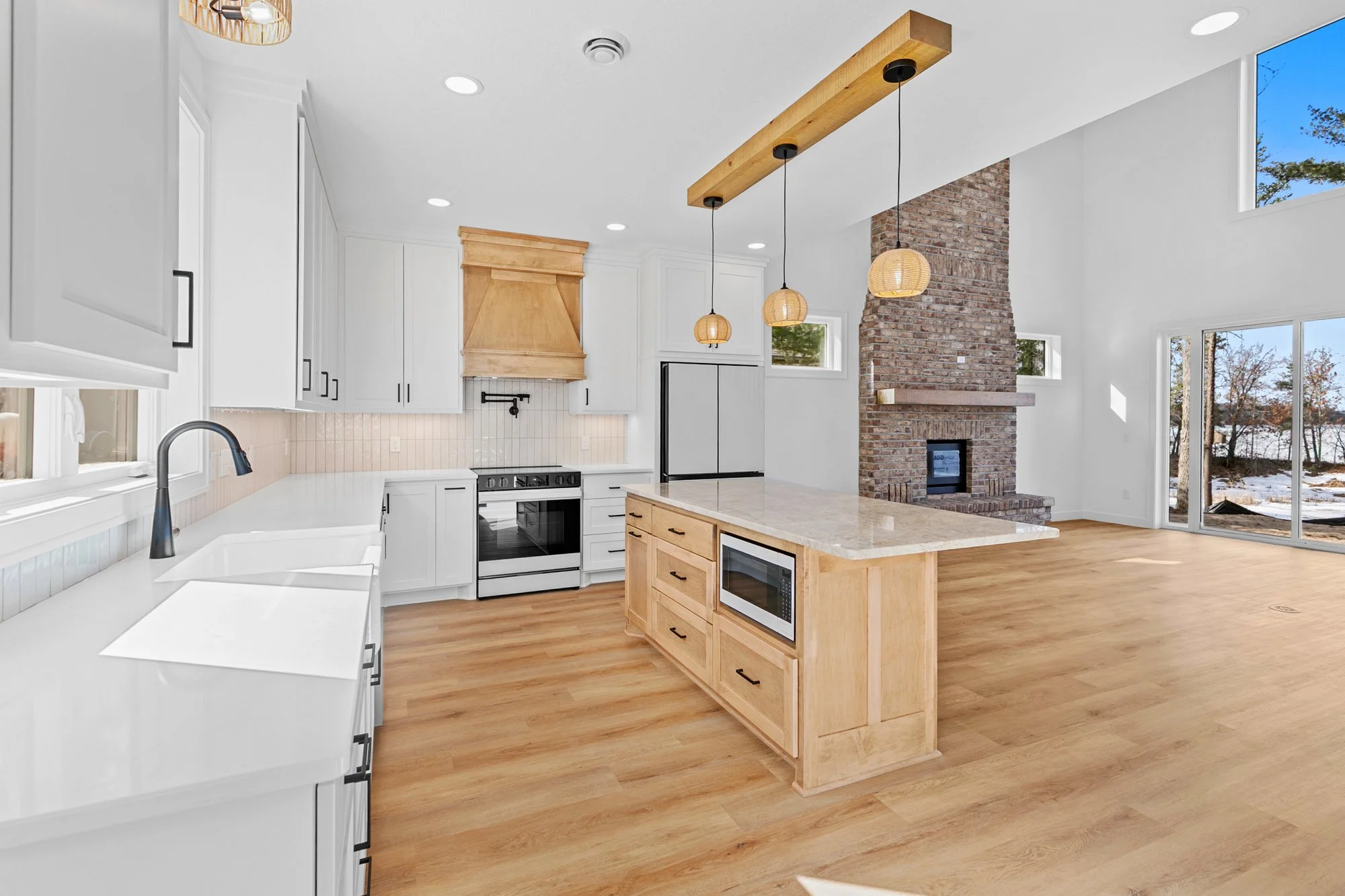 This lakefront property on Bell Horn Bay of Big Sandy Lake in Minnesota stuns with sweeping views, space to play, and a wide open kitchen.